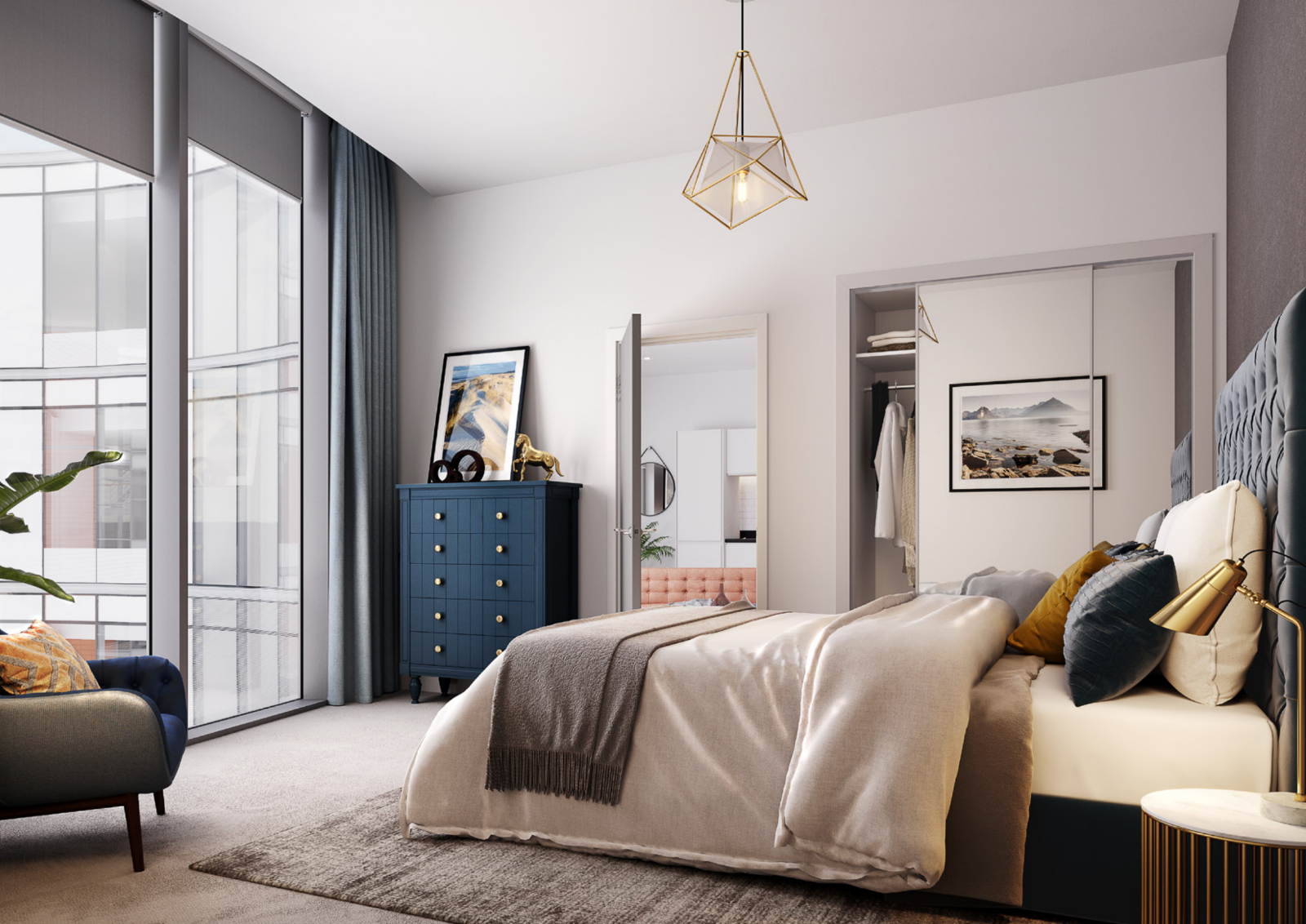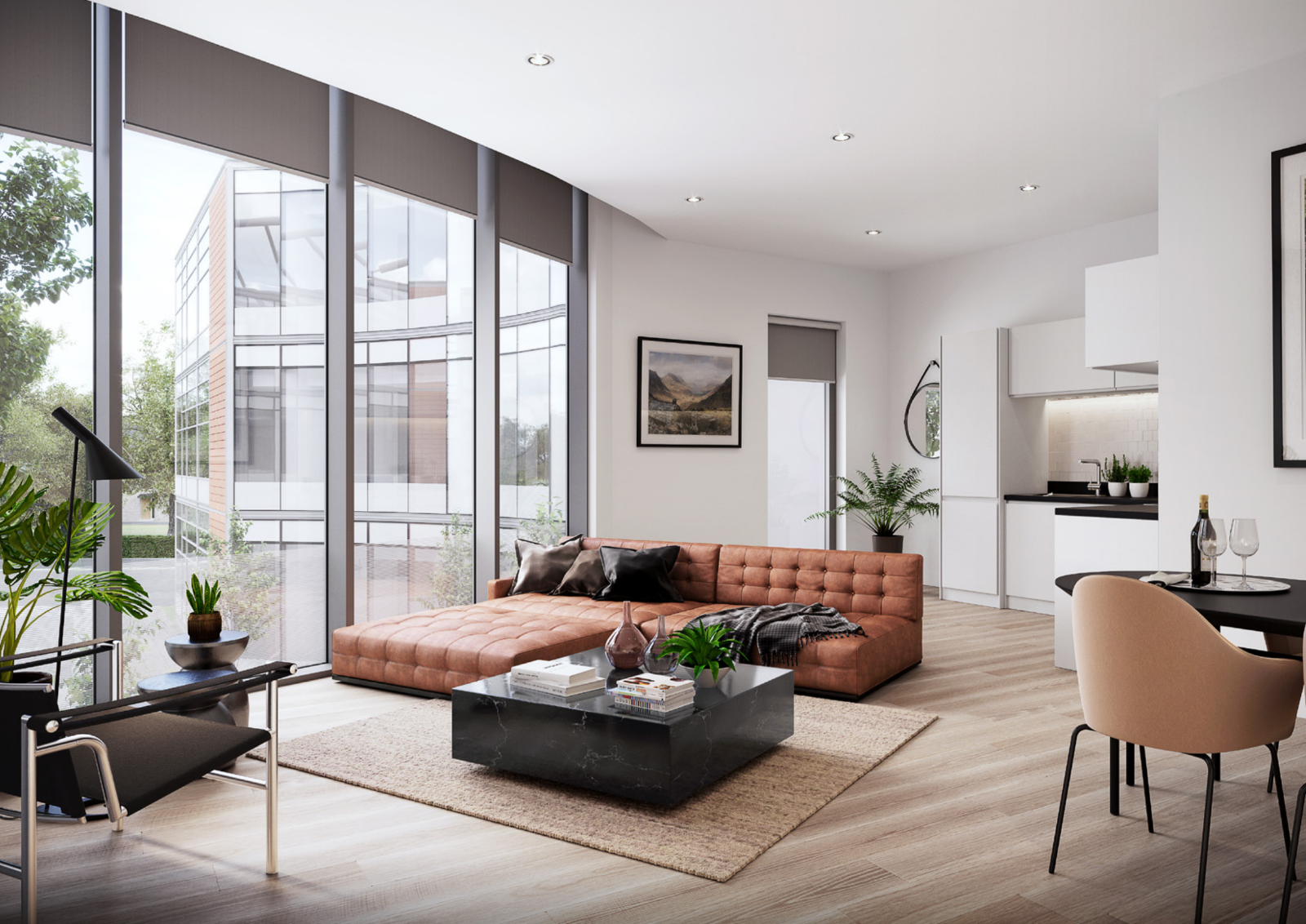 Set over 3 floors in private landscaped grounds, this all-glass icon will feature 101 stylish, open-plan executive suites and 29 1 bedroom apartments, meticulously crafted to meet the needs of the modern tech and digital executive. Expansive windows flood light into each and every apartment, highlighting flexible, modern and open-plan living spaces whilst premium integrated kitchens featuring built-in appliances and contemporary fittings make life a breeze for the residents that call No. 1 Thames Valley Home.